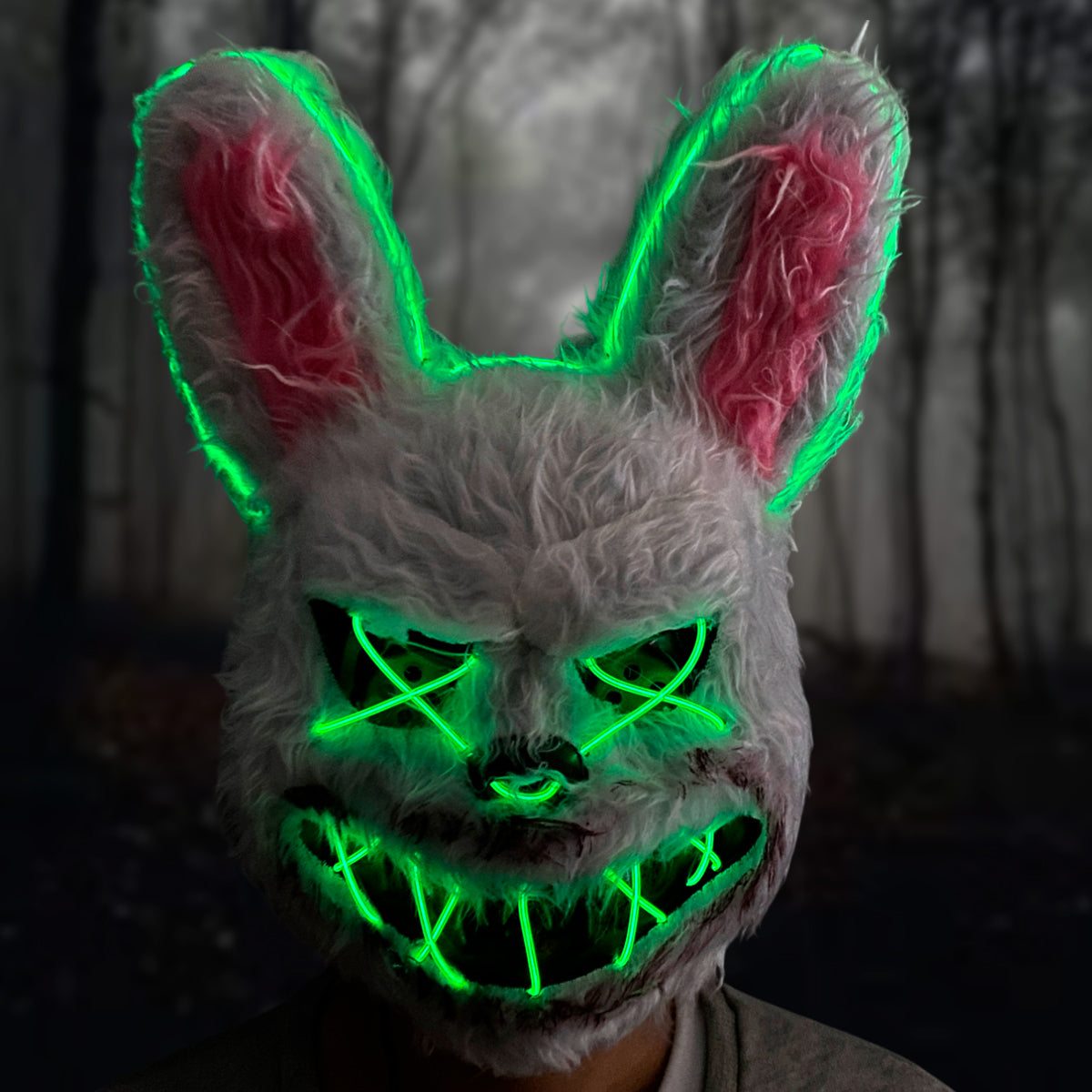 Sorprende y aterra a todos con este impactante diseño de conejo iluminado con LED. Perfecta para fiestas, Halloween, disfraces y eventos nocturnos. Su estilo único y su brillo intenso harán que no pases desapercibido.
